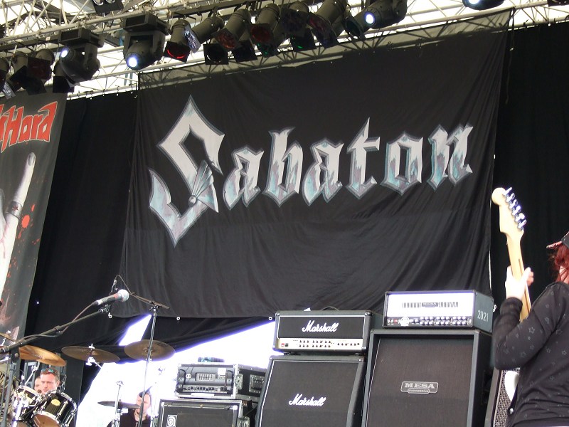 22.25: Zeit für Hammerfall, die Bühne zu betreten. Während bei Grave Digger nur ein (ziemlich cooles)
