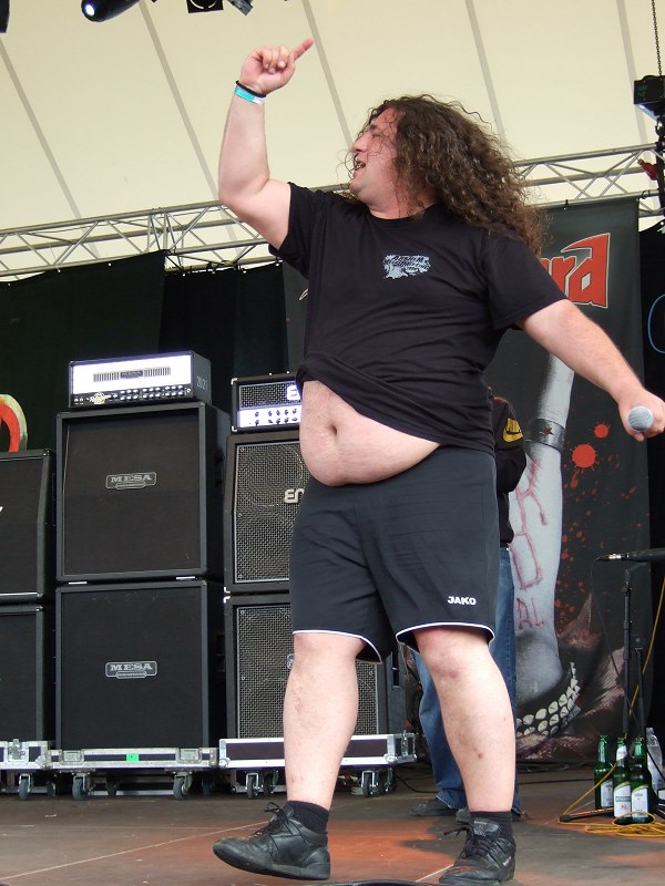 unter dem TShirt hervorlugte. Na, da ist wohl das eine oder andere Bier hineingewandert.