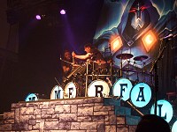 Backdrop die Bühne zierte, gab es bei Hammerfall schon etwas mehr Bühnenaufbauten, z.B. eine Empore