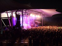 vor der Bühne auch schon voll war, sind wir lieber auf den Stufen geblieben, um uns das ganze von weiter hinten