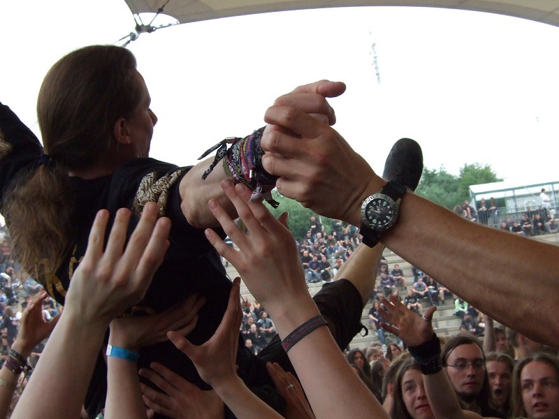 "Flugverkehr" oder hinter einem ein Moshpit, so wie bei Heaven Shall Burn, bei denen ging es richtig ab.